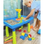 Stolik na wodę i piasek został zaprojektowany tak, aby przyciągać uwagę dzieci i utrzymywać ich zainteresowanie dzięki interaktywnym elementom.