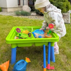 Odkryj wszechstronny stolik do zabawy 2w1 WOOPIE, który łączy wodne harce i piaskowe tworzenie w jednym kompaktowym zestawie. Dwie oddzielne przegrody pozwalają napełnić jedną wodą, a drugą piaskiem, dzięki czemu dzieci mogą jednocześnie nabierać, przelewać, przesiewać i formować.