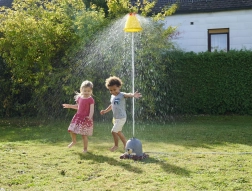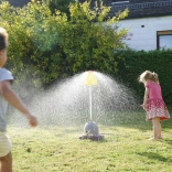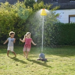 Kapelusz zraszacza wystrzeliwuje wodę, tworząc efektowne widowisko wizualne i zapewniając ochłodę nawet w najcieplejsze dni.