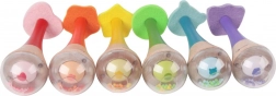 Kolorowe koraliki wewnątrz marakasu nie tylko tworzą dźwięk, ale też wizualnie angażują dziecko, co sprzyja stymulacji zmysłów.