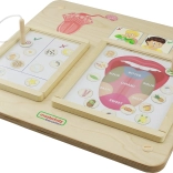 Dzieci uczą się, jak chronić swój zmysł smaku i zachowywać bezpieczeństwo podczas zabawy. Tablica wspiera wyobraźnię i ciekawość.