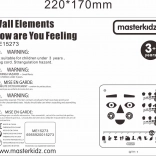 W dolnej części znajduje się 10 codziennych sytuacji, które nauczyciel lub rodzic wykorzysta do dyskusji. Dziecko ustawia wyraz twarzy i przesuwa znaczniki na trzech wskaźnikach emocji (szczęście, smutek, złość). Dzięki temu rozwija empatię, samoświadomość i umiejętność mówienia o swoich uczuciach.
