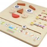 Odkryj sprytną pomoc do nauki emocji: drewniana tablica Masterkidz umożliwia dzieciom identyfikowanie, opisywanie i wyrażanie emocji poprzez przesuwanie brwi, oczu, nosa i ust. Dziecko może dodać łzy lub rumieńce, tworząc wyraz smutku, radości albo złości.