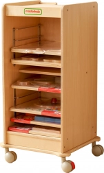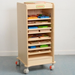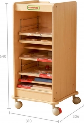Przejrzyste przechowywanie edukacyjnych paneli w standardowym formacie 28 × 28 cm oszczędza czas i miejsce oraz utrzymuje porządek w sali.