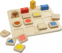 Elementy w podstawowych kolorach i kształtach prowadzą dzieci do naturalnego rozpoznawania i prawidłowego dopasowywania w kolumnach i wierszach.