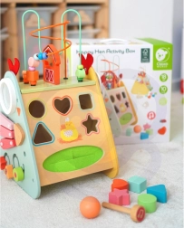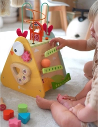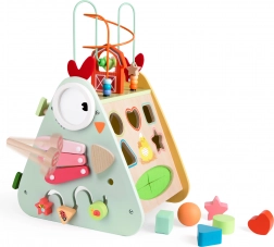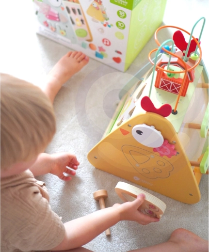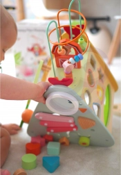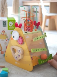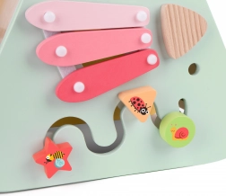 Ksylofon, labirynt, koraliki, zębate koła, sorter i inne sprytne elementy utrzymują uwagę dzieci na długie godziny i wspierają naukę przez zabawę.