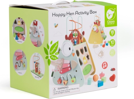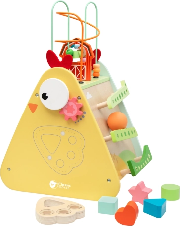 Odkryj wszechstronną drewnianą kostkę montessori 10w1 CLASSIC WORLD, która łączy ulubione aktywności dzieci w jedno sprytne centrum zabawy i nauki. Oferuje ksylofon, labirynt, koralikowy tor, zębate koła, sorter kształtów i inne elementy wspierające rozwój motoryki małej, koordynacji oko–ręka oraz kreatywności. Wykonana z wysokiej jakości drewna, z nietoksycznymi farbami i odpowiednia już od 18 miesięcy.
