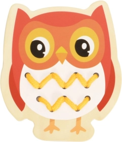 Przygotowane otwory i kolorowe sznurki prowadzą dzieci krok po kroku do precyzyjnego chwytu i ćwiczenia cierpliwości – idealna aktywność dla wieku przedszkolnego.