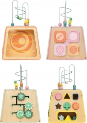- 6 w 1 (tajemnicze drzwiczki, zębate kółka, labirynt koralików, elementy przesuwne, sorter kształtów, tor kulkowy)