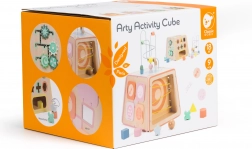 Odkryj wszechstronną naukę przez zabawę z drewnianą aktywną kostką 6w1 CLASSIC WORLD. To kolorowe edukacyjne pudełko oferuje labirynt koralików, zębate kółka, elementy przesuwne, kształty geometryczne i tajemnicze drzwiczki – idealne do rozwoju małej motoryki, koordynacji oraz rozpoznawania kształtów i kolorów.