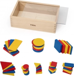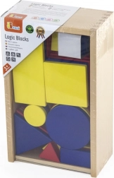 Odkryj sprytną zabawkę dla dzieci od 3 lat: drewniane logiczne klocki VIGA TOYS z figurami geometrycznymi. W solidnym drewnianym pudełku znajdziesz 48 kolorowych elementów do segregowania, układania i rozpoznawania kształtów. Zabawka wspiera myślenie logiczne, motorykę małą i koordynację, a dzięki bezpiecznym farbom w nasyconych odcieniach zapewnia mnóstwo radości podczas nauki i zabawy.