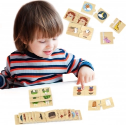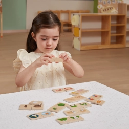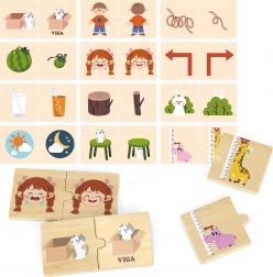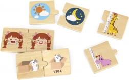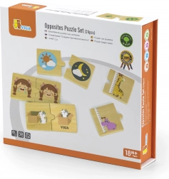 Zabawka dla dzieci od 18 miesięcy przyciąga zabawą w łączenie przeciwieństw. W opakowaniu znajduje się 24 elementy z obrazkami, z których można stworzyć 12 par. Zestaw wykonany jest z wysokiej jakości drewna, co gwarantuje jego trwałość.