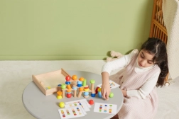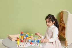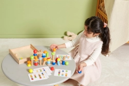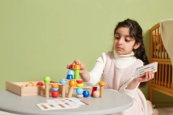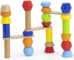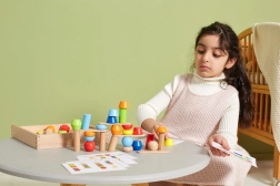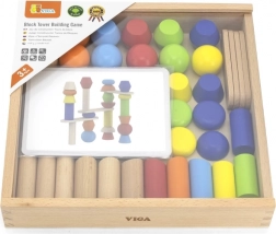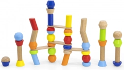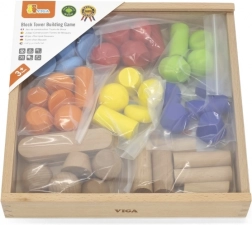 Dzięki tym drewnianym klockom dzieci mogą budować wspaniałe wieże według kart lub własnej wyobraźni. Zabawka wspiera równowagę, umiejętności praktyczne, wyobraźnię i logiczne myślenie.