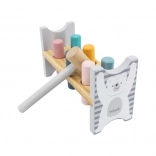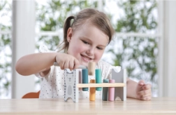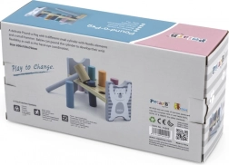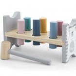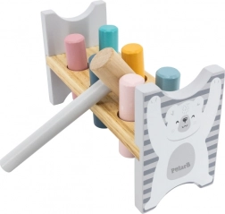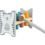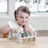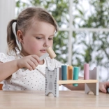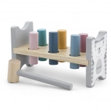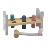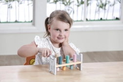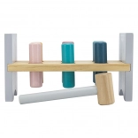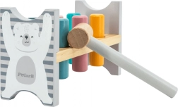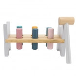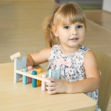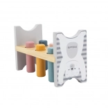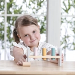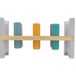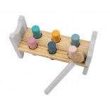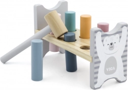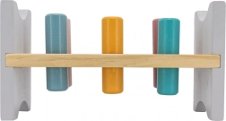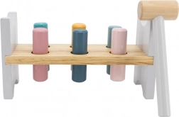 Kolorowa drewniana ławeczka marki VIGA została zaprojektowana tak, aby przyciągać uwagę i rozwijać koordynację dzieci. Głównym zadaniem jest wbijanie poszczególnych kołków przez otwory, co bawi dzieci i jednocześnie trenuje ich zdolności motoryczne.