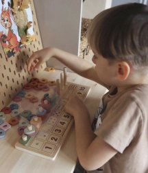 Montessori, jest przeznaczone dla dzieci od 3 lat. Ta zabawka ułatwia i umila naukę liczenia oraz rozwój zdolności motorycznych.<\div>