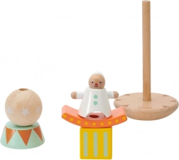 Drewniana układanka Klaun Balancer oferuje unikalne połączenie nauki i zabawy dla najmłodszych. Dzieci mogą składać drewniane elementy na stojaku tak, aby klaun był na górze jak akrobata: