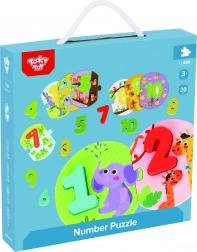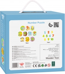 Drewniane puzzle Tooky Toy są idealnym narzędziem do nauki liczb oraz rozwoju motoryki u dzieci. Zawierają 20 elementów - 10 liczb i 10 kart z otworami do wkładania liczb. Wszystko jest starannie malowane nietoksycznymi farbami, które są bezpieczne dla dzieci i dla środowiska.