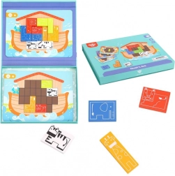 Odkryj urok opowieści o Arce Noego i jednocześnie trenuj mózg. Magnetyczna układanka Tooky Toy oferuje 30 zadań o różnym poziomie trudności: według wzoru wypełnij planszę 10 drewnianymi zwierzątkami tak, aby nigdzie nie pozostało wolne miejsce. Dzięki magnesom elementy trzymają się stabilnie na miejscu, co świetnie sprawdza się również w podróży.
