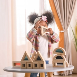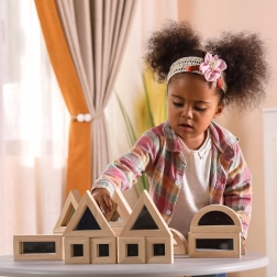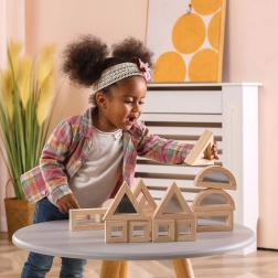 Rozwiń dziecięcą wyobraźnię dzięki wysokiej jakości drewnianym klockom z lustrzanymi powierzchniami. Zestaw zawiera 16 elementów w czterech kształtach – prostokąt, kwadrat, trójkąt równoboczny i półokrąg – które świetnie się układają i nadają do budowania. Efekt lustra naturalnie wspiera samoświadomość i percepcję sensoryczną podczas zabawy.