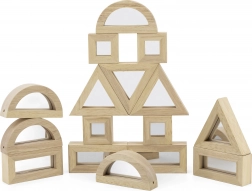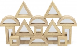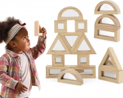 Zestaw 16 elementów w prostokątach, kwadratach, trójkątach równobocznych i półokręgach. Lustrzane powierzchnie zachęcają do odkrywania i wzmacniają samoświadomość podczas zabawy.
