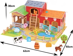 Zbudujcie w domu własne gospodarstwo! Drewniana mega farma WOOPIE GREEN wprowadza dzieci w świat natury, gdzie nauczą się opiekować zwierzętami i poznawać codzienne życie na wsi. Realistyczne budynki (stajnia, stodoła i kurnik), jeziorko oraz dopracowane figurki wspierają kreatywne opowiadanie historii i odgrywanie ról.