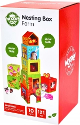 Odkryj zabawne i edukacyjne składane klocki o tematyce farmy od WOOPIE GREEN. Kolorowe ilustrowane pudełka z okienkami oraz drewnianymi figurkami zwierzątek wspierają motorykę małą, naukę liczb oraz poznawanie zwierząt, w tym angielskich nazw. Bezpieczne wykonanie z wysokiej jakości materiałów oraz możliwość budowania, sortowania i przechowywania drobiazgów sprawiają, że ten zestaw to idealna zabawka od 12 miesięcy.