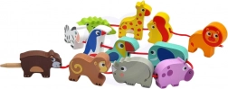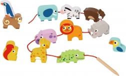 - 12 drewnianych koralików ze zwierzątkami safari + sznurek do nawlekania