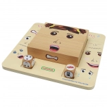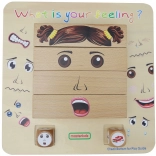 Cztery drewniane bloki pozwalają dzieciom układać aż 64 różne mimiki, które obrazują radość, smutek, strach lub złość i uczą, jak wyraz twarzy zmienia znaczenie emocji.