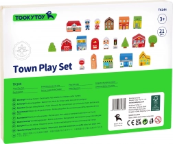 Elementy wykonane są z trwałego drewna i pokryte bezpiecznymi, nietoksycznymi farbami. Praktyczne drewniane pudełko z przegródkami ułatwia przechowywanie i przenoszenie.