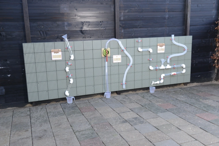Przymocuj rurki, lejki i kubeczki, aby stworzyć własny obieg wody. Dzieci zrozumieją przepływ wody oraz zależność przyczyna–skutek.