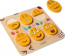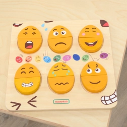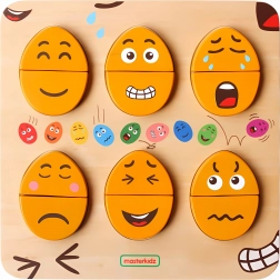 Odkryj zabawną i edukacyjną zabawę dla najmłodszych: drewnianą tablicę MASTERKIDZ, która uczy dzieci rozpoznawać i wyrażać emocje. Dzięki łączeniu górnej i dolnej części twarzy dzieci tworzą różne miny, rozwijając inteligencję emocjonalną, empatię, motorykę małą oraz umiejętności komunikacyjne. Solidne drewniane wykonanie i przyjemne kolory wspierają koncentrację oraz samodzielną zabawę.