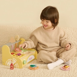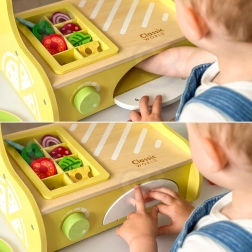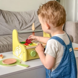 Dzięki bogatym akcesoriom dzieci trenują małą motorykę, logikę układania oraz umiejętności społeczne podczas wspólnego gotowania i serwowania. Zabawka wykonana jest z certyfikowanego drewna FSC i bezpiecznych materiałów, przyjaznych dla dzieci i środowiska.