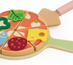 Kolorowe filcowe dodatki, takie jak ser, warzywa czy ryba, pozwalają układać własne pizze i rozwijać kreatywność oraz małą motorykę.