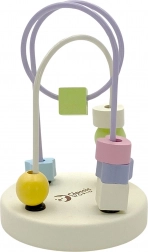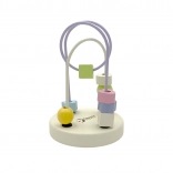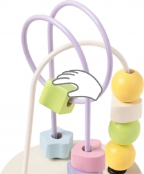 Labirynt z koralikami stanowi wyzwanie dla dzieci, które przesuwając koraliki, rozwijają małą motorykę i koncentrację.