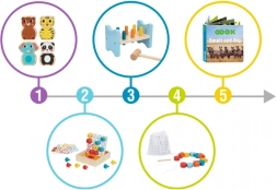 Edukacyjny box Montessori od TOOKY TOY jest idealny dla dzieci w wieku 19–21 miesięcy. Zawiera 5 różnych gier i zabawek, które wspierają rozwój umiejętności poznawczych, emocjonalnych i motorycznych. Świetny wybór do zabawy i nauki!