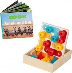 - Ilustrowana książeczka „Duże i małe”: Edukacyjna książeczka pełna wciągających ilustracji i tekstów, która pobudza wyobraźnię.