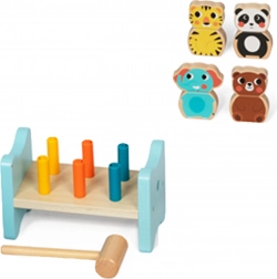 Klasyczna zabawka z solidną drewnianą konstrukcją, kolorowymi kołeczkami i młoteczkiem. Wspiera rozwój logicznego myślenia oraz rozróżniania kolorów.
