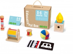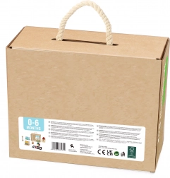 TOOKY TOY przedstawia drewniany edukacyjny box 6w1, który jest zaprojektowany tak, by wspierać całościowy rozwój twojego dziecka. Ten box obejmuje różnorodne gry, które pobudzają zainteresowanie i naukę u dzieci od 0 do 6 miesięcy.