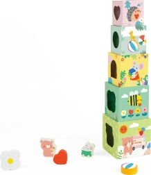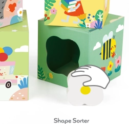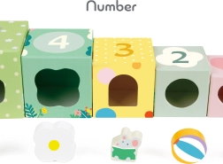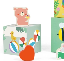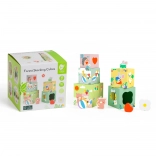 Ten zestaw klocków z leśnym motywem przedstawia różne elementy, takie jak rośliny, zwierzęta i owady, które dzieci odkrywają na poszczególnych ściankach klocków. Klocki można układać w wysoką wieżę lub wykorzystać do sortowania kształtów, co rozwija motorykę oraz logiczne myślenie.