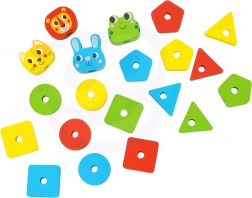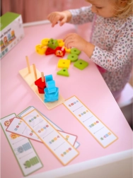 Dzięki 27 różnym elementom dzieci mogą tworzyć różnorodne konstrukcje według własnych pomysłów lub dzięki kartom ilustracyjnym.
