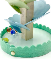 Każde uderzenie kulki o kolorowy „listek” tworzy delikatny dźwięk przypominający cymbały. Dzieci łączą bodźce wzrokowe z muzycznymi i rozwijają percepcję sensoryczną.