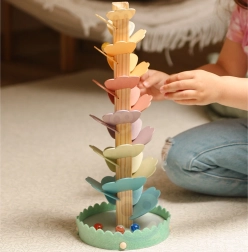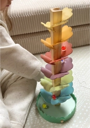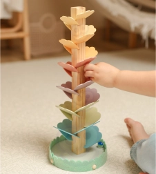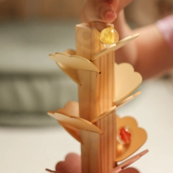 Drewniane muzyczne drzewko, znane jako drzewko kulkowe, zamienia każde puszczenie kulki w kojący koncert. Wielobarwne „listki” tworzą tor, po którym kulki staczają się w dół, a przy każdym kontakcie powstają przyjemne, delikatne tony. Zabawka wspiera koncentrację, cierpliwość i naturalną ciekawość.