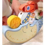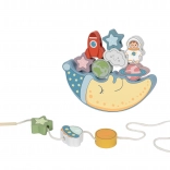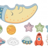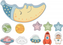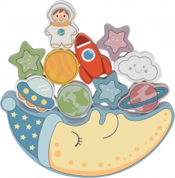 Dzieci mogą układać kosmiczne klocki na śpiącym księżycu i rozwijać swoją precyzję oraz cierpliwość.