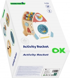 Drewniana rakieta to wielofunkcyjna zabawka, która oferuje sześć różnych aktywności wspierających rozwój umiejętności dziecka: