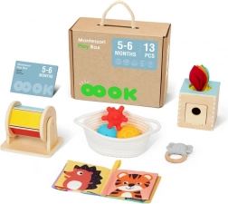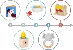 Edukacyjny box Tooky Toy dla dzieci 5-6 miesięcy jest idealnym prezentem dla małych noworodków. Zestaw zawiera: