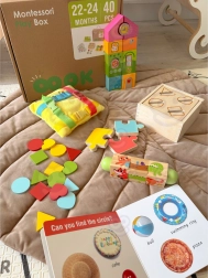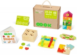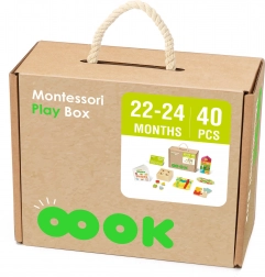 Ten drewniany zestaw montessori marki TOOKY TOY został zaprojektowany z myślą o dzieciach w wieku 22–24 miesięcy. Dzięki przemyślanej kombinacji aktywności rozwija zmysły (wzrok, dotyk, słuch), wzmacnia rozwój psychomotoryczny i oferuje naukę przez zabawę. W komplecie znajduje się także przewodnik dla rodziców z podpowiedziami, kiedy i jak wprowadzać poszczególne zabawki.