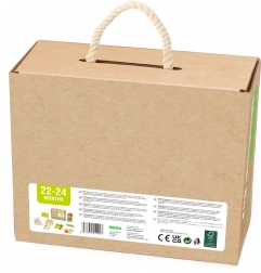 Bezpieczne wykonanie z drewna i tkanin, nasycone kolory oraz kompaktowe opakowanie z uchwytem czynią z niego praktyczny prezent na co dzień. Dzieci bawią się, sortują, budują i odkrywają – a przy tym naturalnie rozwijają umiejętności potrzebne do dalszej nauki.