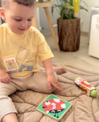 Gładkie drewniane elementy, nasycone kolory i miękkie tkaniny zapewniają bezpieczną i przyjemną zabawę na co dzień – trwałe materiały sprostają dziecięcej ciekawości.