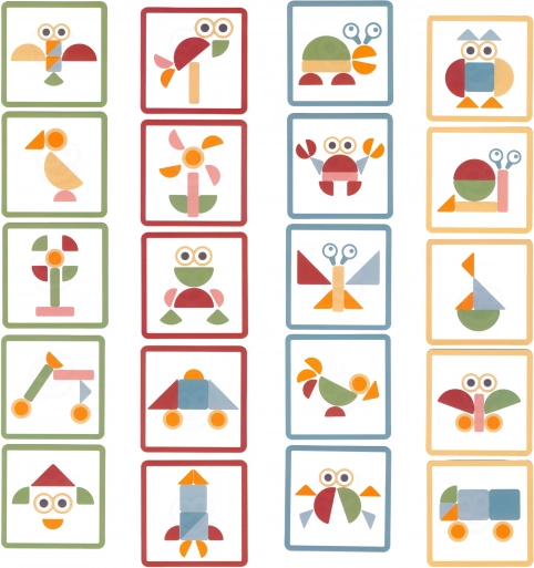 Dziesięć dwustronnych kart oferuje 20 motywów od prostych po zaawansowane – idealne do stopniowego rozwoju umiejętności.