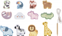 - 13 (11 zwierzątek, chmurka, sznurek z drewnianą końcówką)